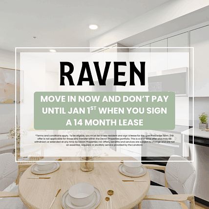 This property offers extraordinary community amenities ideal for downtown living, with bike storage, a bike repair station and a dog washing station. Furthermore, Raven Apartments offers spacious entertainment areas with an outdoor courtyard and rooftop patio.