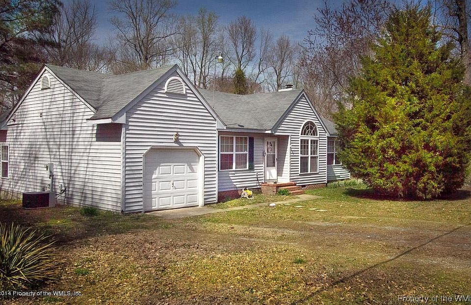 Priced to sell and below assessment--Great deal on a riverfront community with river access and boat ramp. This one level living home comes with a 1 car garage, open floor plan, fireplace, vaulted skylights, wood laminate floors, 3 bedrroom, 2 full baths, vinyl siding, fenced rear yard and close to Williamsburg and I64. There is also and additional lot beside it that seller is willing to negotiate