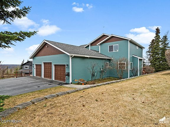 Welcome Home to spectacular Glacier, Inlet, ER Valley & City Views from every window. This Classic Beauty rests atop Brendlwood neighborhood where jaunts into town are quick & easy. Nearly wrap-around decks embrace nature, views, & regular glimpses of wildlife. Property includes barn-like shed, garden beds, woodshed, chicken coop, & Meadow Creek access. Solar panels aid in energy efficiency.The spacious interior welcomes you with views from every room, high ceilings, & open flowing warmth. Room for many with 6 bedrooms including 2 bedroom en suites & 2 family rooms. The primary en suite is located on the 1st floor with large tub, dual head separate shower & spacious walk-in closet. 1st floor family room with wood burning stove, wood floors, & floor to ceiling windows to embrace the AK outdoors. Well thought out kitchen with 5-burner gas stove, bar height breakfast bar for 4 & tasteful stainless steal appliances. Laundry, .5 bath, bedroom currently utilized as den, also located on the 1st floor. The 2nd floor includes 2 bathrooms, 3 more bedrooms including the 2nd of 2 en suites which welcomes guests to hunker in and stay a while. Needless to say there are views from every bedroom! The walk out basement includes a large family room with entertainment bar & exit to back yard, bedroom, bathroom, and massive amounts of storage including cold storage. Area under cover on back porch to keep winter wood storage dry. Storage room on side of home below garage. Deck wired for hot tub on right side of deck. Truly a home to behold where the outdoors come in all within minutes to town, schools, trails, and base. NO HOA & public utilities to boot!