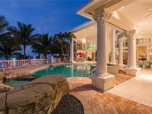 Spectacular Deep Water Riverfront Estate minutes to the Gulf of Mexico,no bridges or locks,in the finest Yachting community in SWFL.This 14,000 under air and 18,000 under roof Estate home was designed on Two Waterfront Lots with unobstructed waterfront views from Every Room. It's truly an Entertainers Dream Home!!Constructed thirteen feet above sea level with a double concrete stairwell down to your own private 225ft of natural sandy white beach.7 bed,7 1/2 baths,4 car garage, chef's kitchen with gas and electric cook tops,6 wet bars with refrigeration,glass elevator,media Room,steam room,custom rock fountain & 12-person spa.Separate 2 bed 1 bath guest house w/kitchen & laundry room.Just a short walk or bike ride to the brand new 24,000 square foot Wellness Fitness Facility that has everything you could ask for;smoothie cafe,TRX room,complimentary fitness classes,TrackMan golf simulator,cycle studio,weight room,2 restaurants & bars with indoor and outdoor dining.Resort style living at its best.Gulf Harbour Yacht &C.C.Is ranked#1 Club in SWFL for Golf,Tennis & 186-slip deep water marina.This iconic Ft.Myers Estate is truly must see!Preview tour online or book a private showing today