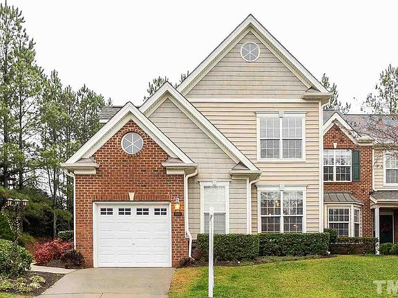 Exceptionally maintained & hard to find first floor master townhome in Brier Creek. Soaring ceilings open up in the large family room. Beautiful separate dining area leading into eat-in kitchen. Oversized master with cathedral ceilings, dual closet & large master bath. Second floor opens up into loft perfect for library, office, or sitting room. Oversized secondary bedrooms offering ample storage. Hardwoods, skylights, and patio round off this ideal property. Great location with access to walking trails!