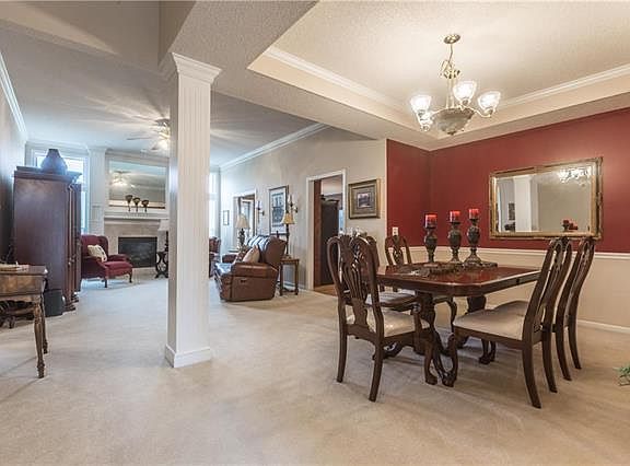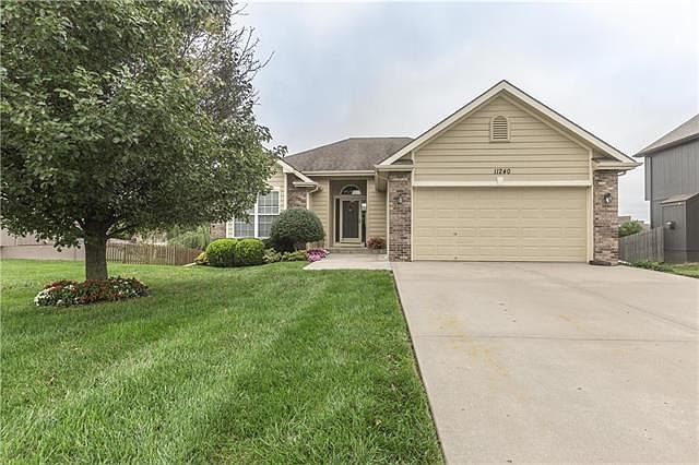 Beautifully maintained Reverse 1.5 Story home in Staley High School area! ONE-LEVEL LIVING! Spacious master suite features double vanities, whirlpool tub, separate shower, walk-in closet & skylight! 2nd bedroom on main level. Wood floors in kitchen & breakfast room w island & pantry! Formal dining room! Living room has vaulted ceilings & fireplace. Laundry room on main level! Finished walk-out basement has a bedroom, full bath, family room & HUGE storage area! Large deck overlooks fenced backyard! Google Fiber!