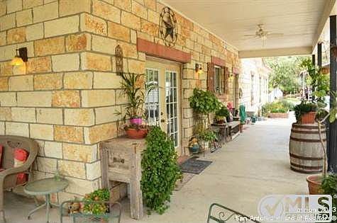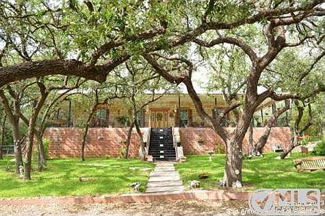 Solid Built Custom Texas Hill Country Home with wrap around porch. Built for relaxation and entertainment. Living features huge rock woodburning fireplace, kitchen features stainless steel appliances , custom made cabinets, gas cooking, huge gameroom w/rock bar, handicap ramp w/wide open floor plan, workshop, dog run, pond, storage bldgs. A Must See. Priced to Sell.