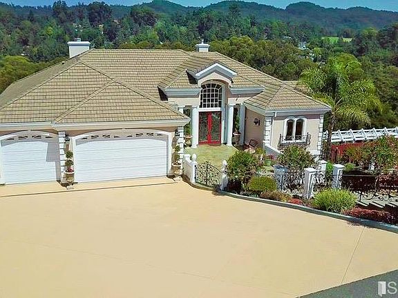 Custom-built 4Bd/4.5Ba home in 2004 in peaceful seclusion at the end of a private road in Chabot Highlands. It sprawls over approx 5,000SF on 1.08 acres w/ sylvan and partial golf course views. Features soaring ceilings, wainscoting, crown molding, porcelain floors. Large windows illuminate the home through elegant arches. The lower level has a recreation or fitness room with a second kitchen & a large room that functions as a movie theater, library, and office. Built-in speakers on both levels including surround sound in the family room and theater. Amenities include: A/C, on-demand water system, 3-car garage. The 1.08-acre estate offers a waterfall feature, gazebo, viewing terrace, deck and a large expanse to add a pool & clubhouse.