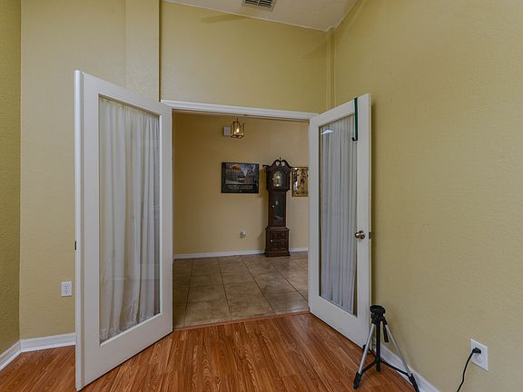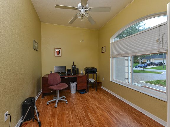 All windows are double pane to help with electric costs. Rest easy knowing this home is hurricane ready, with hurricane shutters and a new hurricane proof door. A lovely mixture of tile and laminate flooring throughout the living and kitchen areas. Loads of cabinet and counter space along with a center island and an eat-in area. A water softener is provided with the home. French doors lead you to the office area or use this as a 5th bedroom! The guest bedrooms are all very spacious. Two guest bathrooms available right outside the hall. The master bedroom is big enough to accommodate large furniture, has a walk-in closet. The master bathroom has dual sinks a garden tub, and a walk-in shower. The Vinyl fence comes with a 25 year warranty.