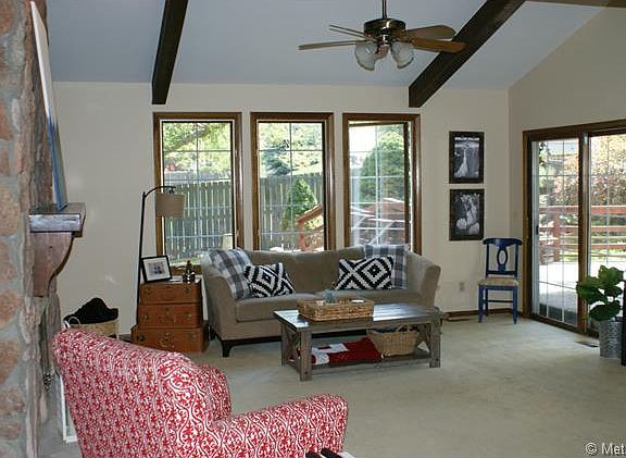 Desirable Ranch Style Home Located in The Ranch Subdivision. Vaulted Living Room with Rock Fireplace Surrounded by Built-In Shelving. Bright and Open with Lots of Natural Light. Kitchen has 2 Pantries, Durable Corian Counters, Desk Area off the Eating Space. Patio Doors Lead to a Huge Covered Deck. Entertain, Relax and Enjoy! The Deck Overlooks a Wonderful Water Feature and a Private Yard. Spacious Master has Vaulted Ceiling, Master Bath with a True Walk-In Closet, 5 Piece Bath with Soaking Tub and Separate Shower. 2 Mainfloor Bedrooms share a Jack and Jill Bath. Basement is Finished with 3/4 Bath, 20'x20' Rec Room, Loaded with Storage Closets and an Additional Bedroom. Special Features: A Main Floor Laundry with Cupboards, 3 Car Attached Garage, Covered Gutters, New Exterior Paint in 2013, Interior Paint in 2014, Roof, Furnace and Central Air all Newer. Mature Trees and Great Neighborhood Located on a Quiet Cul-De-Sac.