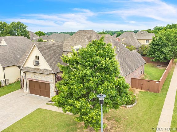 One of South Tulsa's finest desireable neighborhoods - Woodcreek offers everything we love about South Tulsa amenities including neighborhood pool & park! Beautifully detailed executive residence situated on a corner lot with large yard, oversized driveway, enormous 3 car garage & very spacious plan. Recent updates include fresh paint, renewed hardwood flooring & new carpet throughout! Huge master suite with stone fireplace & spa bath with His/Hers closets & vanities, soaker tub & separate shower. Guest suite down offers private back entry hall & large full bath. Vaulted kitchen with floating beams, breakfast nook & views to the large back yard - room for a pool! Great room hosts fireplace flanked by built in shelving & storage. Beamed front entry hosts the formal dining room & french doors lead to the home office with built in desk, shelving & storage. Butlers pantry offers wine & coffee bar & walk in pantry. Upstairs welcomes an enormous open game room ready to host the family get togethers with built in projector & screen! Large Mini-kitchen with extra storage for hosting game watching & game nights with room for pool table too! Three giant bedrooms are up - two share a pullman style bath & one is ensuite with private bath and walk in closet. This home is loaded with an abundance of storage & SPACE! Bixby Schools!! NEW ROOF Coming SOON.