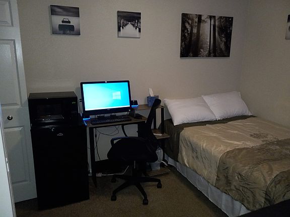 Room for Rent - Utilities Included 1 Bedroom | 1 Bathroom | Furnished | No Pets A furnished room is available for rent, ideal for a single occupant. The room includes: - Queen bed - Desk and chair - Mini-fridge and microwave - 55" 4K TV - Dresser - High-speed internet (1000mbps) Features: Utilities Included: No extra costs for electricity, water, or internet. Shared Amenities: -Fully equipped kitchen -Washer and dryer Outdoor Spaces: -Fully fenced backyard -Access to a community pool -Hot tub -Nearby bike paths Location: - Backs up to a park - Close to Walmart, gym, and hospital - Hospital across the street - One mile to the lake - Parking & Storage: - Parking spot available - Garage storage available Security: - Full security system with 5 cameras streaming in 4K 24/7 - Keyless entry -Smart Home Features Interested? Please send a brief message about yourself, including: How long you are planning to stay Your occupation and work schedule Your age Preferred move-in date (Pro-Rated) I'll respond quickly! Requirements: $40 background check $400 security deposit First month's rent (pro-rated) Month-Month