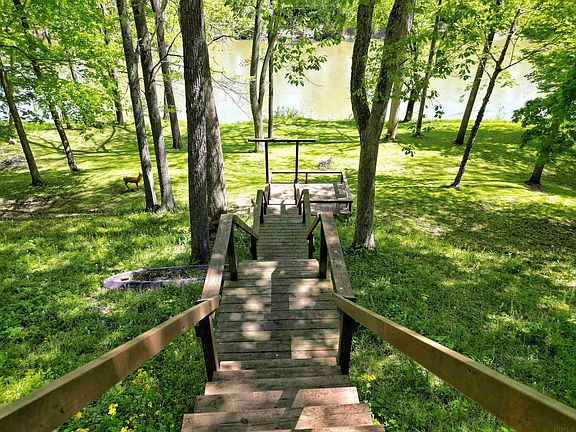 WELCOME HOME to your RIVERFRONT living in this THREE bedroom, ONE bathroom with just over 13 acres!! Enjoy over 1,500 feet of river frontage and GORGEOUS scenic views with plenty of wildlife as well as your own dock for ease of fishing and outdoor fun. As you drive down the private road you will love the mature trees, wildflowers, and simple country living. Stoll up the front steps to a spacious covered porch with views that will leave you speechless and make the perfect spot for enjoying the rocking chair and drinking your coffee. Inside you will love the stunning views overlooking the river from your living room and one of the bedrooms. Home comes complete with kitchen appliances, washer, dryer, and some of the household furniture. Outside, you have plenty of garage and workshop space in your two detached buildings. One is a FOUR car that is 20'x40' and the other is 24' x 24' two car with lean to as well as another log cabin that could be a fun project to fix up. This property also joins the State Forest. This unique property has been well loved and one-of-a-kind. Utility averages are: Daviess Martin County REMC ($98/month), Rented propane tank, WELL, and SEPTIC. Whether you are looking for a weekend getaway or full time living this spot is it!