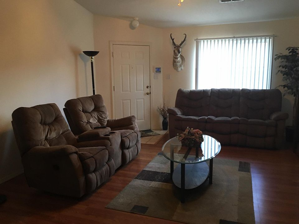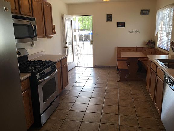 Quite neighborhood located minutes away from Kirtland Airforce Base, Sandia Labs, Costco, and Walmart. Wood Laminate and tile located throughout. Spacious living area with gas-fired fireplace and vaulted ceilings. Roomy master bedroom with walk in closet and large kitchen with nook. Energy efficient construction with two car garage and xeriscaped front and back yard with low maintenance. Covered front entry and extended covered back porch with large back yard. Dog run in back yard. Non-aggressive, quiet, house trained pets welcome. Additional fees apply. Available Oct. 4th.