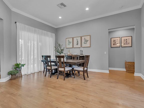 This exquisite Jupiter Farms residence, constructed in 2015, presents an impressive combination of modern luxury and timeless elegance. Set on a sprawling 1.25-acre lot, this home features 5 bedrooms, 3 bathrooms, and a 2-car garage, offering ample space and privacy. The property's gated entrance and pavered driveway set the stage for a warm and welcoming arrival experience. As you approach the covered front patio and step inside, you'll immediately notice the open floor plan, designed to maximize both space and natural light. The home features soaring 11-foot ceilings, intricate crown molding, and elegant 8-foot doors throughout, creating an airy and sophisticated ambiance. The formal living and dining rooms offer beautiful views of the outdoor living area, enhancing the home's connection to its natural surroundings. The kitchen is a true highlight, designed to be both functional and stylish. It boasts custom cherry cabinets, stainless steel appliances, and luxurious granite countertops. A spacious pantry and a generously sized island with a snack bar provide ample storage and preparation space. Adjacent to the kitchen, the breakfast nook is perfect for casual meals, while the adjoining family room is designed for relaxation and socializing. Sliding glass doors seamlessly connect the indoor space with the covered lanai, making it ideal for entertaining or enjoying a quiet moment outdoors. The master suite is a serene retreat, thoughtfully designed to offer comfort and privacy. It features French doors that open directly onto the lanai, providing lovely views of the expansive backyard. The en-suite bathroom is equipped with dual vanities, a separate tub and shower, and his-and-her closets, all contributing to a spa-like atmosphere. In addition to the master suite, the home includes four additional bedrooms. Two of these bedrooms share two well-appointed bathrooms, while the fifth bedroom, which includes a closet, can easily be used as an office or den, offering flexible living options to suit your needs. This residence is also equipped with several high-quality features designed for both convenience and safety. Hurricane impact doors and windows provide peace of mind, while the indoor laundry room adds to the home's practicality. The side-load 2-car garage is located on a paved street, enhancing both functionality and aesthetic appeal. Additional features include a Walter filtration system, a security system, and a sprinkler system, all contributing to the property's overall quality and convenience. The home's exterior spaces are just as thoughtfully designed as the interior. The covered lanai provides a comfortable space for outdoor relaxation and entertainment, seamlessly blending with the indoor living areas. Beyond the lanai, the vast backyard awaits your creative vision. This expansive outdoor space is a blank canvas, offering endless possibilities for you to design your ideal retreat. Whether you envision a tranquil garden, a sparkling pool area, or an extensive entertainment zone, this property provides the perfect foundation to bring your outdoor dreams to life. In summary, this Jupiter Farms home combines modern amenities with elegant design, set in a peaceful and private location. Its spacious interior, luxurious master suite, and versatile additional bedrooms provide a comfortable and functional living environment. The well-appointed kitchen and open floor plan are ideal for both everyday living and entertaining, while the expansive backyard offers endless opportunities for customization. With its impressive features and serene setting, this residence is not just a house, but a true home ready to offer its new owners both comfort and joy.