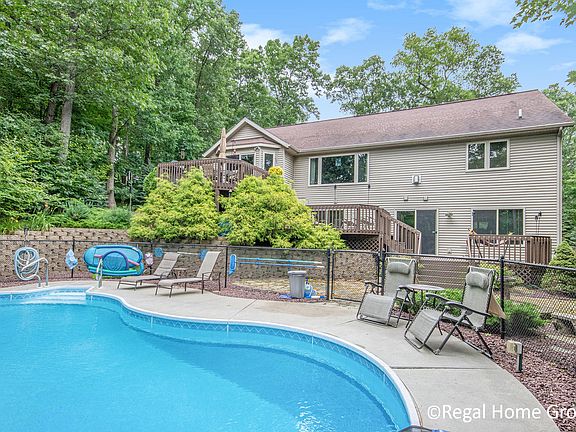 First time on the market, this is the perfect home for a nature lover! Located towards the end of a cul-de-sac and backing up to 20 acres of green space with walking trails, mature trees and a trout stream. This original owner well cared for home offers stunning views from the living room of forest and rolling ravines. The main level contains a master suite, with a walk in closet, soaker tub and shower. Additionally you have an open floor plan with the living room, dining and kitchen as well as main floor laundry and a half bath. The walk out lower level includes 2 additional large bedrooms, a full bathroom, an abundance of storage and a rec room. The backyards features an amazing pool with a private setting perfect for entertaining and ultimate relaxation. Check out this home today!