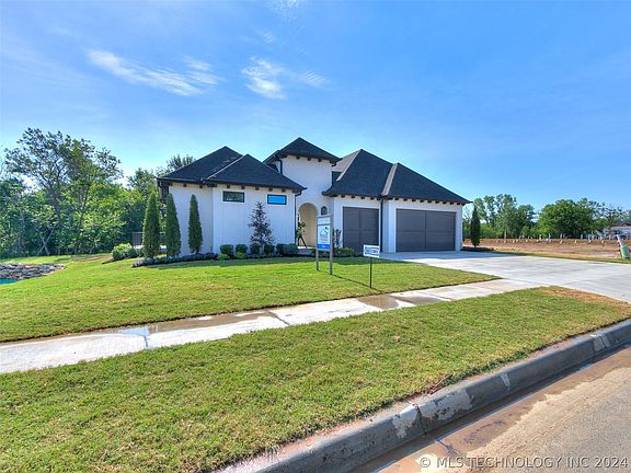 Fantastic New Plan in desirable Jenks schools at Estates at Ritz Hollow. This spacious single story floor plan features 4 bedrooms, 4 full and 1 half bathrooms, 3 car garage and a guest cottage. The main house has 3 bedrooms, 3 full and 1 half bath, 3 car garage. This home has plenty of space for entertaining with flexible open concept living. The guest cottage has private access and includes 1 bedroom, 1 bath, kitchen with dining and patio. Additional features include: stainless steel appliances, XL Frigidaire built-in refrigerator/freezer, custom soft close cabinetry throughout, spray foam insulation, tankless hot water heater, full tile showers, energy efficient HVAC and more! Enjoy an evening out on the back patio with pond views! Call today for more information or to schedule a showing!