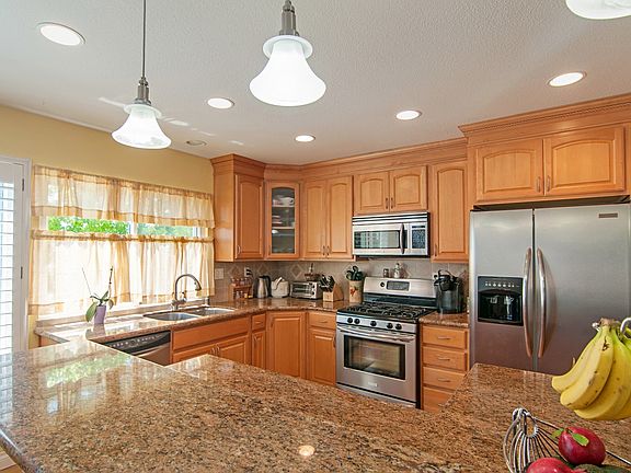 Welcome to this bright & welcoming single-story Mira Mesa home! You'll enjoy a tastefully upgraded kitchen w/upgraded cabinetry, granite countertops, large island with breakfast bar, tiled backsplashes, pendent & recessed lighting & stainless steel appliances. Dual pane vinyl slider & windows throughout the home, which also offers 2 fireplaces - the living/family rooms - and stylish laminate flooring & plantation shutters in the living areas. Great corner lot location, patio cover & spacious yard space!