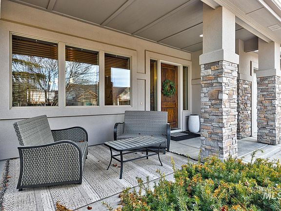 Welcome to Hazelwood Village! Incredible community complete with not one but two community pools and clubhouse! This beautiful home welcomes you with a large front porch perfect for watching stunning Idaho sunsets! Inside quality shines with real hardwood floors and a separate formal dining and / or potential office space. Open concept living room with gas fireplace and quality built-ins! Kitchen with granite countertops, large island and stainless steel appliances. Grand primary suite boasts dual vanities, walk in tile shower and walk in closet. Fully fenced yard with a covered back patio featuring gas bbq hook ups. This gem of the neighborhood is the one you have been waiting for!