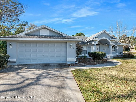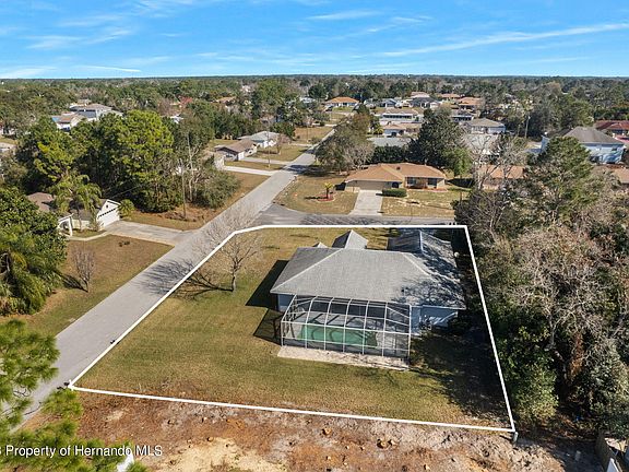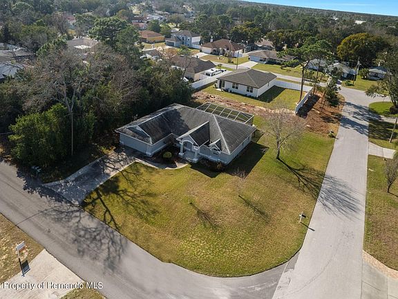 Active with contract accepting backups. Everything about this Spring Hill pool home is gonna make you want to swipe right! Lovingly maintained and beautifully updated, she's all dressed up and waiting for you on a large corner lot. The double door entry leads into an open floor plan with spacious living and dining rooms; soaring vaulted ceilings add volume to the space. Whether it's Netflix and chill with your boo, or an intimate dinner with close friends, you'll have plenty of room for leisure or entertainment. Cooks will adore the gleaming kitchen with its stone counters, bright cabinetry, breakfast bar, and eating nook. All three bedrooms have upgraded laminate flooring. A split bedroom floor plan means that your privacy is assured in the master bedroom, though. It boasts private access to the pool area, as well as his-and-hers walk-in closets. Soak your stress away in the ensuite master bathroom. There you'll find a gorgeous dual sink vanity, a large soaking tub, and a separate shower. The two guest bedrooms also have walk-in closets, and they share a full bathroom with a tub and shower combo. Grab your towels and sunscreen and head out the glass sliding doors to lanai. You can sit in the shade under the covered portion and sip an umbrella drink, or catch some rays on the pool deck. And when it gets too warm, not to worry - just splash down into the screen-enclosed pool! The backyard is huge, with plenty of room for little ones and pets to play. A new roof was installed in 2015, and the AC replaced in 2021. This home is nestled into a peaceful neighborhood with no HOA fees or restrictions to worry about. It's centrally located to pretty much everything in Spring Hill, including tons of shopping and dining options, like local-owned favorites Papa Clyde's Ice Cream, Jam's Cafe, Copacabana, Caffe Connections, and more. There are five parks within a 5 mile radius: Rotary Centennial Dog Park, Delta Woods Park, Veteran's Memorial Park, Anderson Snow Park, and Weeki Wachee Springs State Park. You're only a few minutes away from US-19, so you can easily access Homosassa, Tarpon Springs, and Clearwater. Reaching Tampa, the international airport, and the Gulf coast beaches via the nearby Suncoast Expressway is a breeze. Don't miss your chance to fall in love with this lovely home - see it before it goes!
