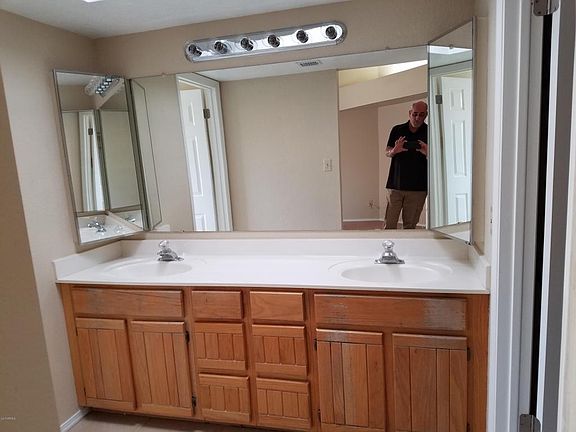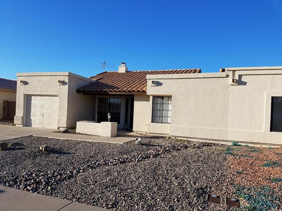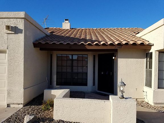 Fresh paint inside and out. New carpeting just installed. Ceramic tile flooring otherwise. Large, private back yard with it's own covered back patio. Block wall fencing. Your own 1 car garage and a large additional parking slab. It has 3 ighted pot shelves in the dining room, the master bedroom and the living room. Built-in microwave, washer, dryer and refrigerator all included. Low maintenance front and back yards. Cathedral ceilings throughout except the 2nd bedroom. No HOA here. Garden atrium tub/shower and sky light in the master bathroom. It also has a wood burning fireplace. Ceiling fans in the dining room, great room and master bedroom.