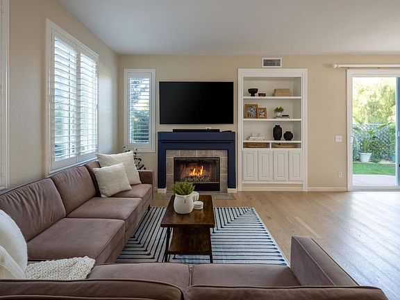 Modern upgrades and peek ocean views make this detached home exceptional in its gated Carmel Valley community. Light-filled and boasting European wire-brushed oak hardwood flooring, plantation shutters, and central AC. The kitchen features quartz countertops and stainless steel appliances, opening to a spacious family and dining area with indoor-outdoor living. The optional third bedroom is currently set up as an office. This property is located on a desirable corner lot - the largest in the community. The expansive backyard offers multiple sitting areas, providing privacy for relaxation and entertaining, with only one adjacent neighbor. Within close walking distance to the community pool and three spas. Conveniently located near top-rated schools, shopping, dining, and golf courses. Less than 10 minutes to Torrey Pines State Beach, Torrey Pines Reserve, and Los Peñasquitos Canyon Preserve. This Carmel Valley home offers the perfect blend of luxury, convenience, and coastal living.