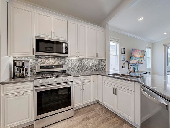 Calling all 55+ adults looking to engage and enjoy the best of active adult living. This beautifully renovated 2 bed, 2 bath with den home has an updated kitchen with stunning white cabinets, quartz counter tops, breakfast nook and quartz counter height peninsula overlooking an open concept dining and living area. Luxury Vinyl Plank Flooring in living, dining and entry areas. No Carpet. The home boasts 2 pantries in the kitchen and 2 walk-in closets in the primary bedroom. If you love to entertain this is the perfect home for you. Sliders lead out to an extended fully screened-in lanai. The fenced in yard is a welcomed plus. The home boasts Impact windows thru out. Vitalia is close to golf courses, Tradition Square, and Cleveland Clinic Tradition Hospital Price Adjustment!