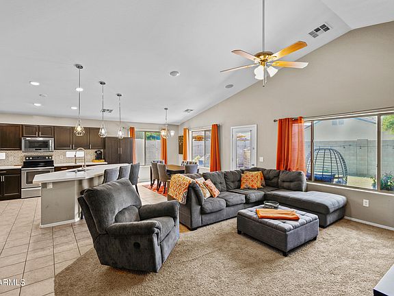 MOVE-IN READY! This 5 bedroom, 2 bath Avondale home features soaring ceilings, an open concept living area, and an abundance of natural light. The gourmet kitchen with beautiful quartz countertops, stainless steel appliances, and a massive island ideal for preparing meals or entertaining guests. Recharge after a long day in your primary bedroom and ensuite complete with dual vanity, a luxurious shower, and a walk-in closet. Whether you're enjoying your morning coffee on your covered patio or hosting an evening BBQ with friends, this backyard has something for everyone to enjoy. With an amazing central location, you'll love living just a quick distance from St Route 10, shopping, exquisite dining, and everything else Avondale has to offer. Don't miss your opportunity to own this truly one-of-a-kind home - hurry in!