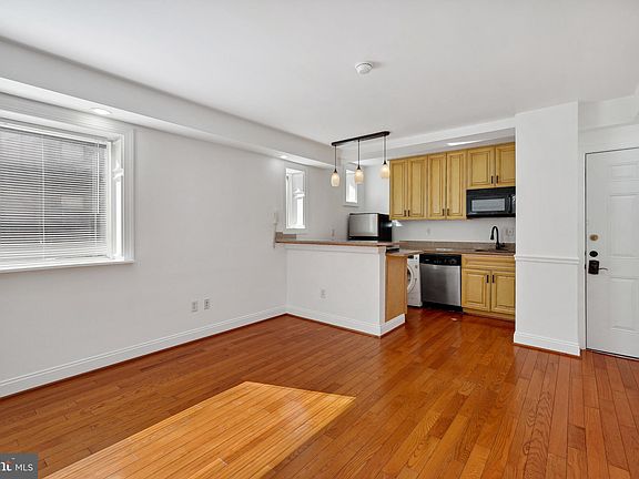 Ideally located and loaded with charm, this airy apartment in a classic brownstone sits on a leafy street in desirable Logan Circle, just steps from the circle and the bustling 14th Street Corridor. Inside the light-filled unit, a welcoming layout boasts gorgeous hardwood floors and extensive upgrades. The open kitchen features granite counters, pendant lighting, dining bar, stainless steel appliances including a recent oven replacement, Kohler fixtures, and an LG all-in-one washer/dryer. The living area is bright and cheery with large windows and recessed lighting. French doors lead into a lovely bedroom with sunny exposures on two sides. The remodeled bath features a new vanity with granite top, new toilet, and updated Kohler fixtures. This move-in ready home also features a Schlage electronic door lock, recent thermostat and blind replacements, and fresh paint throughout. Step out the front door and walk to the area’s best restaurants including Nina May and Le Diplomate, shop at Whole Foods and Trader Joe’s, and enjoy the convenience of the Metro just two blocks from your doorstep. Rarely does such a great value become available in one of the city’s most sought-after neighborhoods!