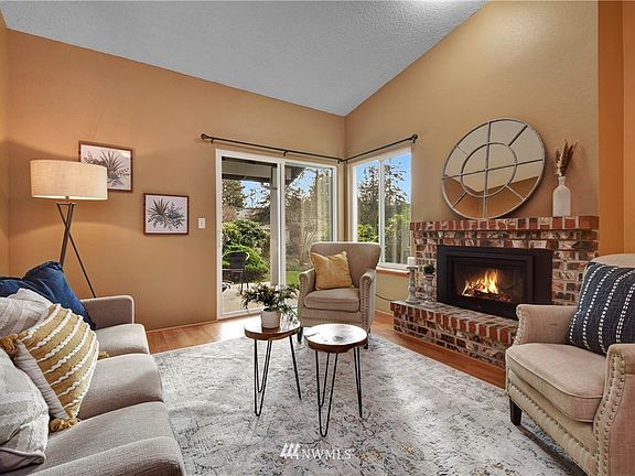 This lovely 2 bedroom, 2 bath one level unit is light and bright and includes a spacious living room w/ vaulted ceilings and gas fireplace, dining area, spacious kitchen, and breakfast bar. All appliances stay. Primary bedroom includes a double closet, spacious bath and extra storage. Relax on the large covered patio which is great for barbecues and relaxation! Attached one car garage. Wonderful community with outdoor pool, sport court, and clubhouse. End unit with no one above. New roof, siding, and windows. Located in a quiet yet convenient location.