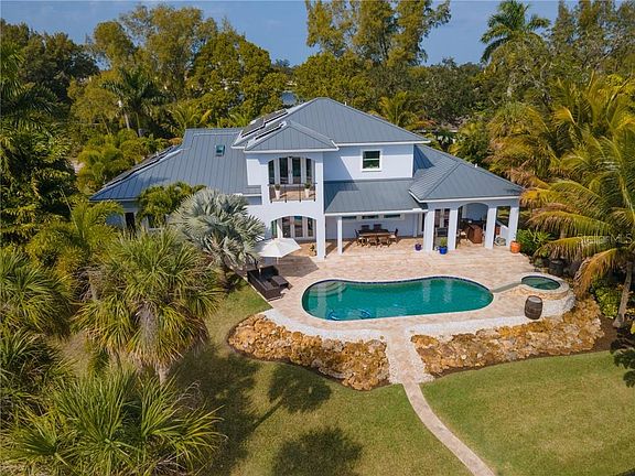 Exquisite Newer Construction Waterfront Pool home on Warner's East Bayou! This house was built with an open checkbook and you will be amazed at all of the upgrades! Featuring 3 bedrooms, an office and a bonus room, 2.5 bathrooms, a 3 car garage and almost 4,000 sqft of living space! The entire home was built to be efficient and quiet...offering solid concrete block construction as well as filled concrete walls, all impact windows and doors, a 50 KW whole house generator, 10 KW Solar System, a foam insulated metal roof and Plex plumbing system. This is an incredible home that is built to withstand just about any storm imaginable! The curb appeal of this home is evident from the moment you pull in the paver brick driveway surrounded by tropical landscaping. Walk thru the front door and your eyes will be drawn to the stunning views of the pool and bayou from almost every room! The interior greets you with a grand foyer and winding staircase leading to the upper level with beautiful hardwood flooring throughout, tray ceilings, crown molding, and decorative pendant lighting. The layout suits todays discerning buyers with tall ceilings, open floor plan and tons of natural light. The first floor features a family room, dining room off the kitchen, 2 bedrooms,1.5 baths and a large bonus room that can be used from many purposes. The spacious chefs dream gourmet kitchen is absolutely stunning with granite countertops, beautiful custom cabinetry, center island, stainless steel Miele appliances and deep double stainless sink, Venetian plaster and faux wood beams. ..perfect for creating small intimate meals or entertaining a large crowd. Walk up the stunning concrete spiral staircase to the office and master bedroom. The huge master suite has 2 private balconies overlooking the water in the front and rear of home as well as an expansive master bath with beautiful custom vanities. The closet is a sight to behold!!! One of the largest closets you will ever see in an home this size and could easily double as a nursery. The real magic of this home happens when you open the back doors! Outside you will find a beautiful large lanai and patio for entertaining and relaxing by the sparkling heated saltwater pool and spa. The extensive tropical landscaping in the backyard really gives this property the feel of being at a resort. Privacy abounds and views are highlighted! The boat dock is 35 feet featuring a 12,000 lb lift and cover. So many extras with this house its truly hard to list them all! Located on highly desirable Warner's East Bayou, only minutes by boat to lots of restaurants including the Bradenton Yacht Club. Live the Florida lifestyle you have always dreamed of! Hop on the boat for a day of fishing or simply cruise out to Egmont Key for a day on the water with friends. Don't wait on this one though because it's truly one of a kind!