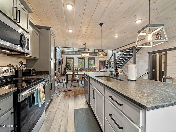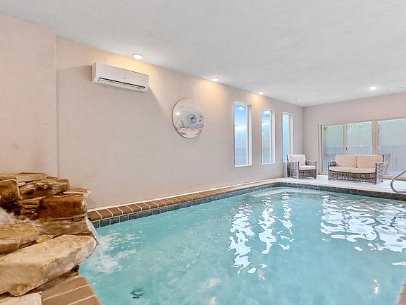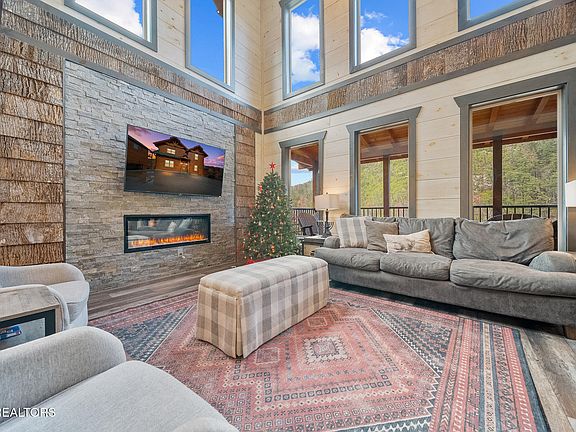 THIS ONE IS A SHOW STOPPER! 5BR/5BA HEATED INDOOR GUNITE POOL CABIN WITH WATERFALL, PRIME LOCATION, MOVIE THEATER SETUP FOR 12, GAMEROOM, AND MILLION $$ VIEWS! Welcome to your dream getaway! This stunning modern rustic cabin offers many custom accents including wide plank flooring, wood bark accents, lots of windows, coffee bar, and an island snack bar in the gourmet fully equipped kitchen with granite and stainless appliances. Also, get cozy around the stone accented electric fireplace in the living room with access to the private covered deck with outdoor seating. You will enjoy bedrooms on each level with a total of 5 bedrooms, including 4 King suites with en suite bathrooms with tile showers, and a queen bedroom along with a futon in the game room area. Experience movie nights in the theater room or challenge friends to a game of pool in the loft/arcade game room with air hockey and a multicade along with a lounge area. With a projected income of over $160,000 annually, this cabin provides an excellent investment opportunity for short-term rentals.Conveniently located just minutes from the Parkway in Pigeon Forge, this luxurious cabin sits in the desirable Black Bear Ridge subdivision. Enjoy easy access with nice wide paved roads and plenty of paved parking right in front of the cabin. This cabin comes turn-key and fully furnished, ready for you or your guests to enjoy! Highlights include covered decks with breathtaking mountain views and walk-in showers in the bathrooms. Also, step into the bubbling hot tub to relax by the stars. Don't miss out on this fantastic opportunity to own a premier rental property that has every amenity needed for success! Cabin also has a backup generator! *CHECK OUT THE 3D VIRTUAL TOUR!!