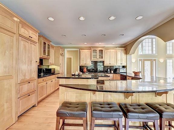 • Kitchen Features: Breakfast Bar, Cabinets Stain, Eat-in Kitchen, Pantry, View to Family Room, Kitchen Island, Pantry Walk-In, Solid Surface Counters