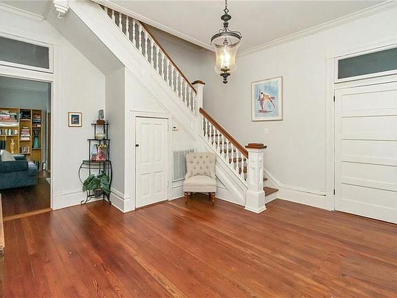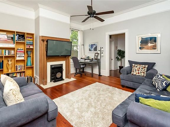 Historic District!! This move in ready beauty was built in 1904 but was totally renovated and recently painted inside and out in soothing neutral palettes! Sitting on a tree shaded lot within walking distance to many of downtown Mobile's amenities (and a great location for Mardi Gras parades!), this light filled home has all of today's conveniences with all of the charm of yesteryear! Sit outside on the wrap around porch with an afternoon libation and enjoy visiting with your neighbors; or for a bit more privacy, go out on the upstairs balcony overlooking the street scene. The foyer is wide and welcoming with a graceful winding staircase leading up to the bedrooms on the second floor. The master bedroom has a walk in closet, and the on suite master bath has a separate walk in shower with rain head shower fixture, free standing tub, marble countertops and double sinks. The guest bath has a jetted tub and subway tile in the shower. The third bedroom (no closet) has French doors opening on to the upstairs balcony. It's currently being used as an office. Downstairs you will find a gourmet kitchen with gorgeous custom granite countertops, a wood topped island, a free standing gas range and a refrigerator with a beverage center. The kitchen has some exposed brick and opens up into a large breakfast/keeping area. Adjoining the kitchen is a large laundry room with beautiful porcelain tile flooring. The front living room (currently being used as a home gym) and the family room have matching fireplaces with beautiful wood mantels. The original hardwood floors are stunning. High ceilings run throughout the house, with large windows letting in an abundance of light. Outside in the back yard, which is completely fenced, is a side porch, a small shed, and ample space for your pet to roam. Come see all that this charming home has to offer, and enjoy the vibe of Oakleigh! ***Listing Agent makes no representation to accuracy of sq. ft. Buyer to verify. Any and all updates are per Seller(s).***