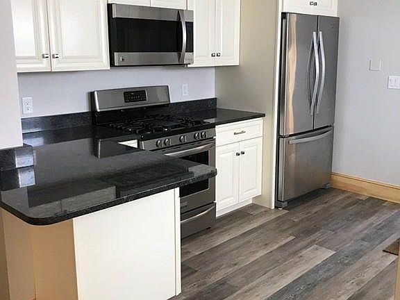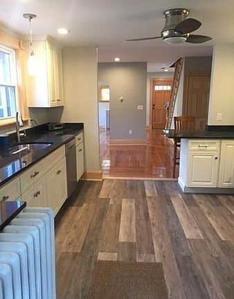 Location! Location! Location! Walk to commuter rail, bus line, restaurants and shops. This beautiful home has a ton of natural light and boasts an open floor plan. Entire unit has been completely renovated. The new kitchen offers granite counters, stainless steel appliances and opens to dining area and living room with hardwood floors. The second floor offers 2 large bedrooms, home office and new full bathroom. Additional features include new heating system, updated electrical, washer and dryer hookup in unit and ample storage. Available Now!