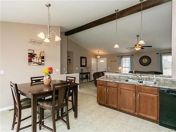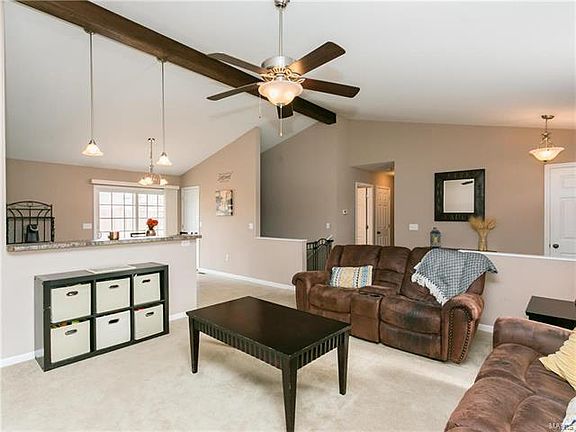 From the warmth of the wood beam accentuating the vaulted ceiling as you enter this inviting home to the open floor plan highlighting the spacious eat-in kitchen with lots of cabinets, pantry and access to the patio, this home is move-in ready and well-loved. Master suite offers walk-in closet in the bedroom and double bowl vanity in the bathroom. Main floor laundry. 2 car attached garage. In the lower level, there is plenty of finished space for relaxing or entertaining. You'll also find a full bath with linen closet and a bonus room that could be a 3rd bedroom with installation of egress window. Unfinished area provides wood shelving to help keep your storage area organized. The exterior offers phenomenal curb appeal, professional landscaping, patio, level yard, and storage shed. Less than 1/2 mile to Lakeview Park, which offers a dog park, 2.25 miles of walking trails, modern playground, 3 lakes for fishing, pavilions with water, electricity, and BBQ pits for picnics and parties.