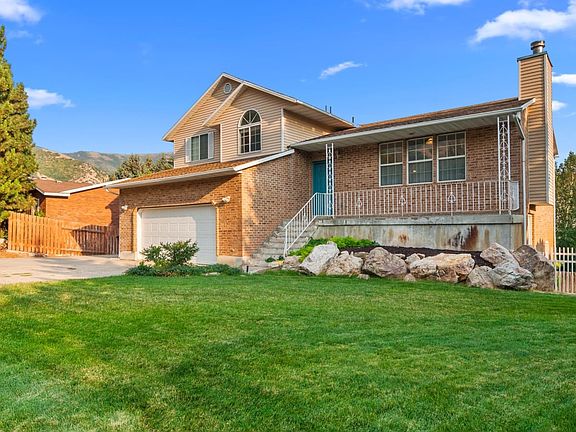 Family friendly home located in quiet neighborhood with great schools. 4 bedrooms, 2.75 baths, two car garage, RV parking. Two large family rooms, formal living room, den, two fireplaces, large pantry, updated bathrooms, separate tub and shower in master, new high efficiency air conditioners and furnaces in last four years. Walkout basement. Mountain views from front; and great valley views from kitchen, dining room and large upper level deck with custom gate for toddler/pet safety.