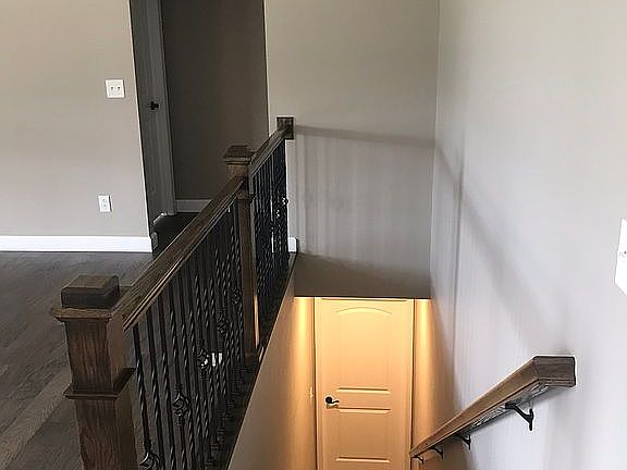 1840 sq ft Ranch with brick and stone front. 2 entry way front door. Has a full basement (1840) with 2 egress windows and rough in for a full size bath. Plenty of room for extra bedrooms and family room. 16x16 covered patio with concrete floor Hardwood floors throughout the living areas and bedrooms. Masterbath, main bath and laundry room have luxury vinyl tile Cambria tops throughout the kitchen area and subway tile backsplash All kitchen appliances included - refrigerator, stove (gas), dishwasher, microwave, and garbage disposal Finished 3 car garage High efficiency gas furnace Fireplace with decorative stone, mantel and hearth Indirect lighted coffered ceiling in the dining area Cathedral ceiling in the living room with large ceiling fan Decorative open stairway with wrought iron spindles, leading to the basement Master bedroom has a coffered ceiling with ceiling fan, walk-in closet finished out 5 ft separate shower, whirlpool and a two bowl vanity Large kitchen pantry Laundry room has soaker sink All utilities - city water and sewer and cable