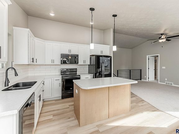 Pinnacle Estates in Tea, SD, offers a small-town charm with a strong sense of community, nearby excellent schools, and is in close proximity to Sioux Falls amenities. This new construction, ranch-style home is a well thought out floor plan with over 1000 square feet of living space. This home offers 2 bedrooms and 2 bathrooms, including a master suite with trey ceiling and master bath featuring an oversized walk-in closet and tiled master shower. The living room is open to the L-shaped kitchen with an island. The dining area has a swing door to the deck with stairs. The unfinished lower level provides the potential for two additional bedrooms, a full bathroom, and spacious family room, ready to be finished to your liking.