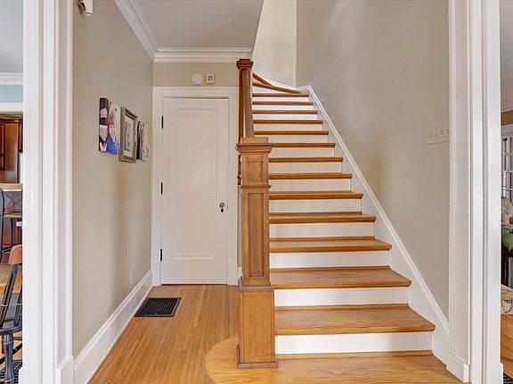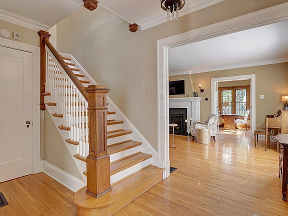 Step into this beautifully updated Georgian-style home, just two blocks from Indiana University's east side. Inside, you'll find a modern kitchen with cherry cabinets, quartz countertops, stainless appliances, and a breakfast bar. More dining space in the adjacent dining room completes this great entertaining space. The elegant living room features a fireplace and double French doors leading to a gorgeous sunroom. Upstairs are two large bedrooms, a full hall bath, and a lovely primary suite. The primary ensuite has marble finishes, double vanities, and a relaxing soaking tub plus a separate shower. The inviting interior of the entire home has hardwood floors, stunning glass door knobs, abundant closet/storage space, lots of natural light, and the charm and character of the original style. Outside, enjoy decks on both levels, including a Trex deck just off the back of the home. The detached garage includes an EV-ready outlet and plenty of space to store bikes and other outdoor gear. Past renovations include electrical & plumbing upgrades, as well as waterproofing. This Elm Heights home is conveniently located near restaurants, Bryan Park, the IU Jacobs School of Music, and various cultural activities, making it a fantastic place to call home. It's also very close to Harmony School and one mile to districted Rogers/Binford Elementary School.