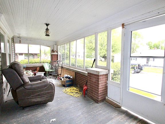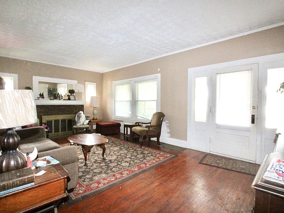 Spacious bungalow features two bedrooms, two baths, large living room, eat in kitchen, family room and one additional room which is used as third bedroom, plus enclosed front porch. Updates include 1 year old HVAC system, new siding, and some replacement windows. Home offers original hardwood flooring, wood burning fire place, and large detached garage.