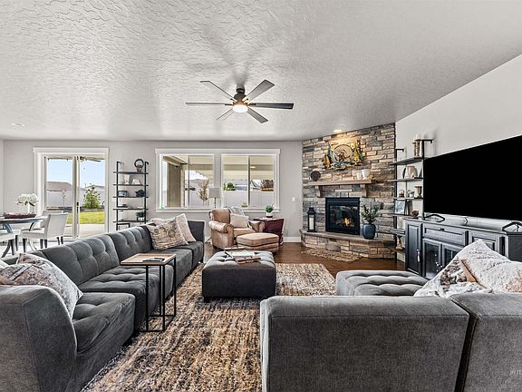An incredibly well-sorted home on a huge corner lot. A generously sized kitchen featuring exquisite alder wood cabinets and quartz counters overlooks an expansive main living area where the family room flows to the dining room. Fantastic split bedroom floor plan with bedroom located on opposite ends of the house, affording increased privacy. The upstairs bonus room boasts its own full bathroom offering relative independence and seclusion from the rest of the home. Upgrades abound from plantation shutters, solar attics fans, solatube skylights, and more. The pristine rear yard is an entertainers paradise offering ample space. The additional concrete offers an expansive covered patio with multiple covered sitting areas. Considerably large 4-car garage featuring 220 volt outlet and 30 amp 110 outlet. The east side of the yard benefits from a double gate offering considerable space for boat or trailer parking. Great location just moments from Meridian Rd for easy access to Meridian and the freeway respectively.