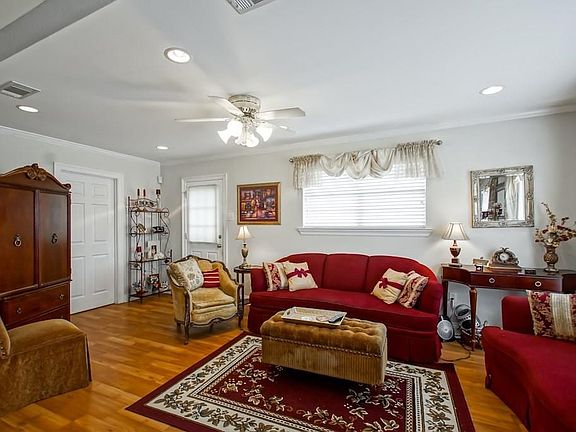 NEW PRICE REDUCTION! OPEN CONCEPT IN LIVING,DINING,AND KITCHEN. NEW ROOF. Pretty laminate flooring in entertaining areas. Gourmet kitchen w/ 6 I Viking stove, Stanless appliances, tons of extra tall cabinets, Island Counter. Master Suite w/LG master closets, Oversized spa tub/shower. Large Fenced yard. Worshop in rear. Walk to Lakeshore Playground/library and seafood markets. Underslab plumbing redone 2004. HVAC is 410A. Security System. Assumable Terminix repair/replace contract. Parking for 2 cars.