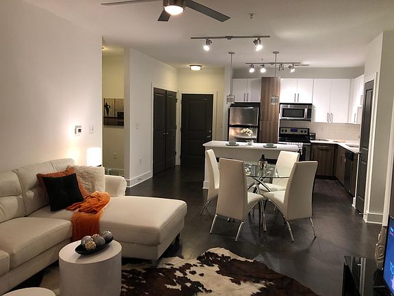 You will love this chic condo with a large living room and large balcony that's open to the dining area and gourmet kitchen! The Master bedroom has a King bed and flat screen TV with a master bath with a separate glass enclosed shower and tub. The walk-in closet is also large and is adjacent to the master bathroom and ensuite. The 2nd bedroom has a Queen size bed and is flanked by a large walk-in closet and private bath. A state-of-the-art washer and dryer are both in the condo. You will love this resort -style property with pool, outdoor lounge, courtyard, and kitchen with cooking grills. It also has a state-of-the art fitness center! All utilities including electricity, water, sewer, valet trash, WiFi, and gated garage parking are included in the price! NO CREDIT CHECK OR INCOME VERIFICATION Only a criminal background check is necessary.