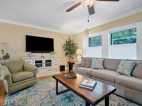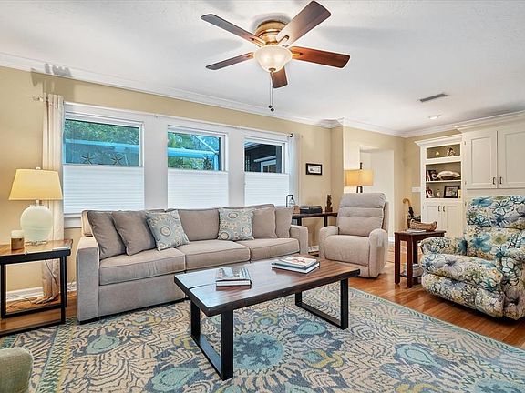 Three beds +office, 2 bath vacation rental home in Tahiti Park. Tastefully decorated, flat screen TV's and Wi Fi throughout. This wonderful home has all you need for the perfect vacation retreat. The master bedroom features a king-sized bed, walk in closet, dual sinks in the bath, the guest bedrooms both have queen beds and there is an office that opens onto the spacious screened Lanai and pool area. The large open kitchen is well appointed with all you need. The lap pool is perfect for those wanting to stay in shape. This lushly landscaped home has an "old Florida" feel to it and is very private. Available for seasonal rentals all months except MARCH, also available for longer stays. Small dog OK with owner approval, sorry, no cats due to allergies. ($150 Cap on utilities per month) Booked January, February, and March and April 2025