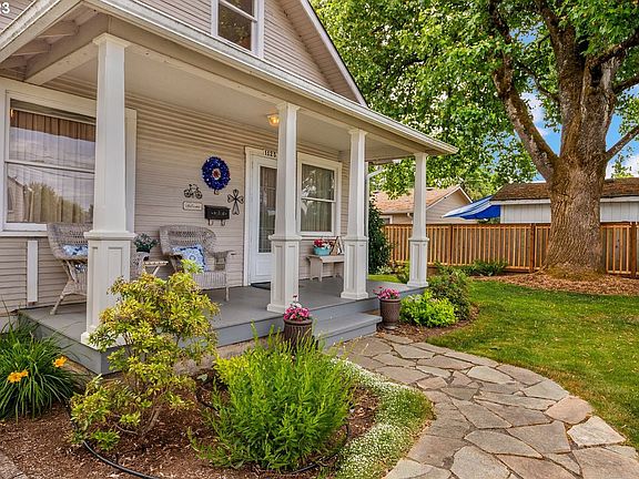 Welcome to this homey cottage in the heart of Oregon City! Both bedrooms on the main level - a spacious primary bedroom off the living room, and a second bedroom off the kitchen. Upper level is extra bonus/flex space, not included in total square footage, which could be used as an office, craft room, work out space, or cozy hangout. Check out the view of Mt Hood from the upstairs back window! Enjoy warm mornings and shaded afternoons in the backyard complete with a slate patio and lovely plantings throughout. Newer detached garage, which could double as a workshop, is insulated, has a 50amp panel, and a heat source. An ideal space for your hobbies, projects, or even extra storage. Newer roof, electrical panel, and water heater. Fiber-optic internet connection allows you to easily work from home. Minutes from downtown Oregon City, shopping, and dining.
