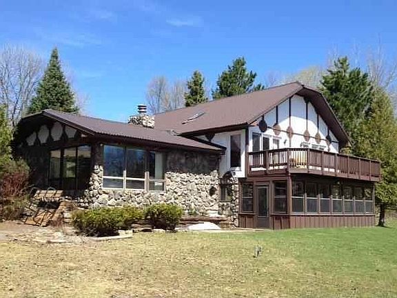 Northwoods Waterfront home! This stunning, custom-built 3200 sq ft tri-level home is located on a quiet, picturesque point with 900 feet of frontage and a scenic island vista, all on the west shore of Lake Michelle. This 4 br, 2 bath home features a large, sunny living room with massive stone fireplace and enough seating for the whole family. The bright kitchen has brand new Granite counter tops, a skylight & lots of cabinets including a large built-in hutch for those special dishes. The dining table offers views of the lake with access to deck. The master bedroom has it's own bath with jacuzzi tub, his & hers walk-in closets and another access to the deck. The large family room has a bar, 2nd fireplace and patio doors to the lakeside enclosed sunroom which is perfect for your morning coffee or a great workout room! Add a Sauna, 2 car attached garage, 1.5 car 2nd garage, private patio, horseshoe shaped blacktop drive, close access to the golf course & this home has it all!