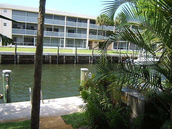 Two bedroom, 2 bath condo on a canal in a gated community off the intracoastal waterway. It features stainless steel appliances, wood cabinets and granite counter tops. It is an end unit so it is light and bright. Does not come with a dock but you can can check with the condo office and see if there are any docks for rent. They will fit a 25 foot boat. Garage A and parking space in front of it go with the unit.