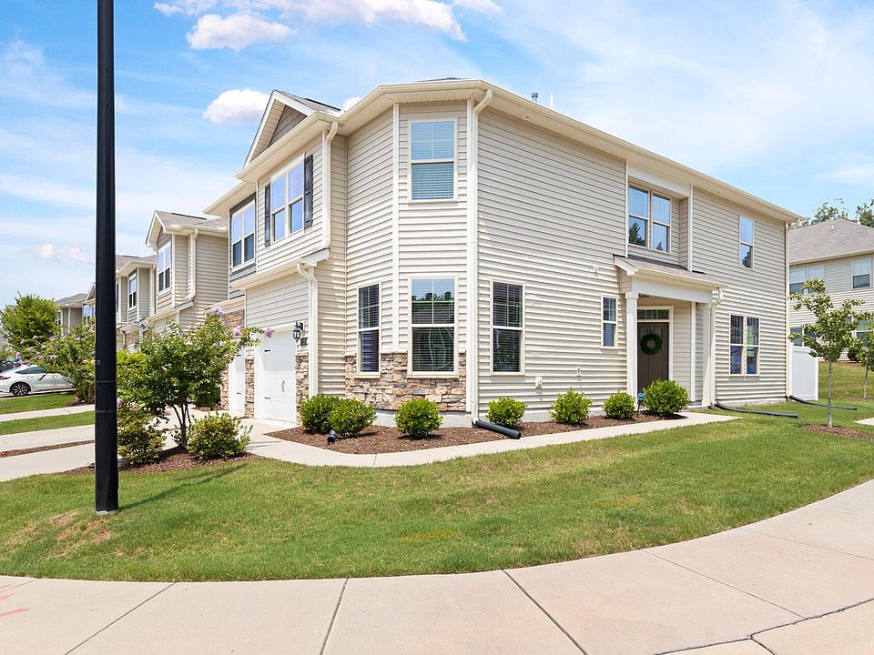 Style + Convenience + Community. Not all homes can offer the perfect blend, but this one delivers on all fronts. Step inside to discover a well-designed open floor plan that maximizes space and natural light that streams through its many windows, thanks to its desirable end-unit positioning. The airy kitchen with an aesthetic of minimalism boasts black granite counters, white subway tile backsplash, gas stove, corner pantry, and sizable island with room for three. Enjoy drinking morning coffee on the patio or working from your own corner office in a dedicated, sunlit space. Upstairs, the primary bedroom suite serves as a spacious retreat, complete with double vanity, walk-in shower with seating, and walk-in closet sufficient for two. A versatile loft area, providing ample space for relaxation or productivity, complements two additional bedrooms, full bath, and laundry room. Beyond its inviting interior, this home offers a lifestyle enriched by community amenities. Enjoy access to the swimming pool, clubhouse, dog park, and nearby American Tobacco Trail. Situated midway between Duke University and RTP, each just a few minutes' drive away, this location is ideal for those who value convenience and connectivity. As RTP continues to grow, the Hwy 55 corridor is poised for prominence, making this home an even more attractive investment in the future.