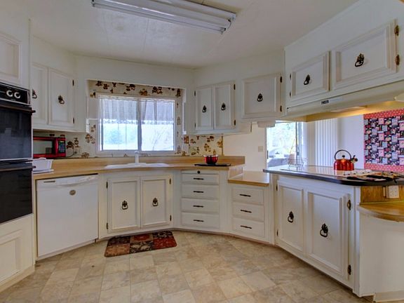 This comfortable home, located at the end of a quiet cul de sac, is a rare find! The space it sits on includes room for a garden and boasts a workshop and storage space as well as room to park an RV. From the covered front deck you can sit and enjoy the sounds of rushing water coming from the irrigation ditch on the other side of the hedge. The kitchen is spacious and laid out well for the family cook. This is a sweet spot and the home is move in ready.