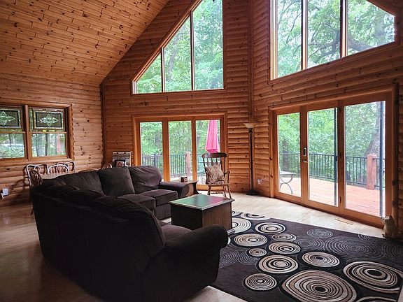 LAKEFRONT CHALET! Lake Wildwood is a private recreational lake community near Varna, IL with over 1400 acres of rolling hills, woods, and meadowland within 2 hours of Chicago Suburbs. Picturesque! Beautiful log chalet with double lakefront lot. Main floor features open kitchen, dining, living area with floor to ceiling lakeside windows, cultured stone fireplace, adjacent lakeside deck, two bedrooms, and 1 1/2 baths. Upper level with two bedrooms, full bath, and balcony overlooking living area. Lower level with additional sleeping space, bath, laundry, garage, and spacious family room adjacent to screened patio and outdoor fire pit. Additional lot is #1126. Association dues of $875/lot/yr includes access to all amenities; 218 acre Lake Wildwood is a stocked all sports lake, 14 acre Lake Tanglewood is a stocked "fishing" lake, 2 beaches, pool, sports areas, clubhouse, pavilions, picnic areas, playgrounds, hiking area, member campground, activities, and 24/7 gated entry. Property is subject to Lake Wildwood rules, covenants, and by laws, including rights of first refusal. Entry pass required to view property.