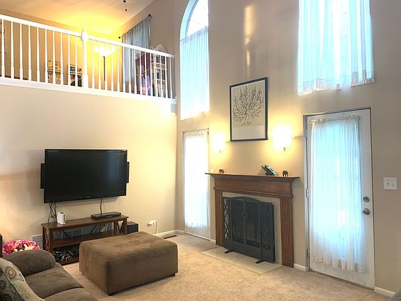 3BR/2.1 bath end unit town home with basement and 2 car garage! It's all here. Updated kitchen with new cabinets, faucet, sink, counters, bamboo floor and newer appliances. New window at kitchen sink. Two-story living room with fireplace with gas start. Doors to large patio and green space. First floor master with beautifully updated master bath with new shower, tub surround, floor, dual vanities. Large walk in closet and ceiling fan. 1st floor updated powder room. Laundry on 1st floor. Second floor has two large bedrooms with new windows and loft overlooking LR. Full unfin. basement. Great area, condition and price!
