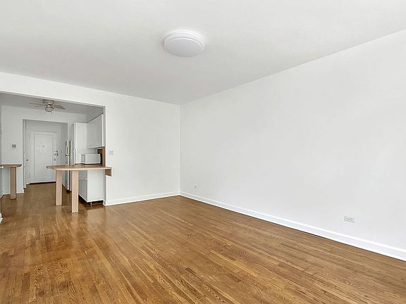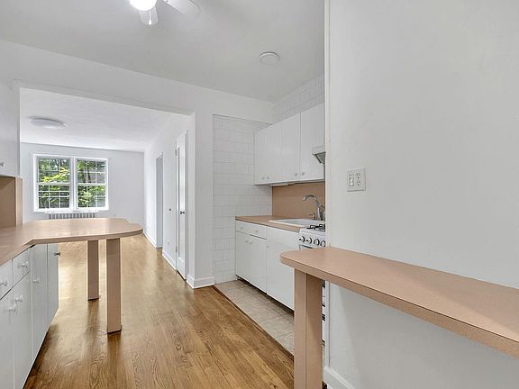 Larger than most new-development 1BDs, this gem of an apartment is overlooking a beautiful garden located in the rear of this quiet building. Enter the apartment through a foyer with a cleverly designed pantry/closet system into a well-planned kitchen boasting an oversized counter that may be used for dining and/or a work-from-home desk. The generous, open-concept living space has two west-facing windows with a lush view of treetops and plenty of room for living and entertaining. Just outside the recently renovated windowed bathroom, there is a very large walk-in closet in addition to a built-in cabinet with drawers and shelves. The unit has 8'8' ceilings and newly-refinished hardwood floors throughout.