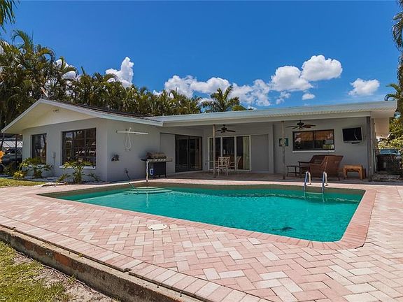 Direct Gulf Access home in the historic Yacht Club area with one of the shortest direct passages to the Open Waters. This home has been totally renovated inside and freshly painted outside. Beautiful designer kitchen overlooks the heated pool and canal. Cook and be able to watch guests/friends playing in the pool. Stainless steel appliances plus a wine rack to hold all your favorite vintages. Sitting area upon entry, travertine tile throughout the entire 3 bedroom, 3 bath home. Two Masters plus another full bedroom and bath! Being sold TURNKEY minus personal items! Home has a one car garage but the driveway is large enough to hold at least four more cars! 7500# boat lift to keep your boat safely out of the water along with a beautiful Captain's Walk. Plenty of room there to clean those fresh fish. There is a small room off of the dining room which is plumbed and wired for a wet bar. This house is perfect for serious boaters and water lovers. Please be sure to watch the virtual tour. Exterior of home has been painted since virtual tour. Please dis-regard orangish and vision beige and navy!